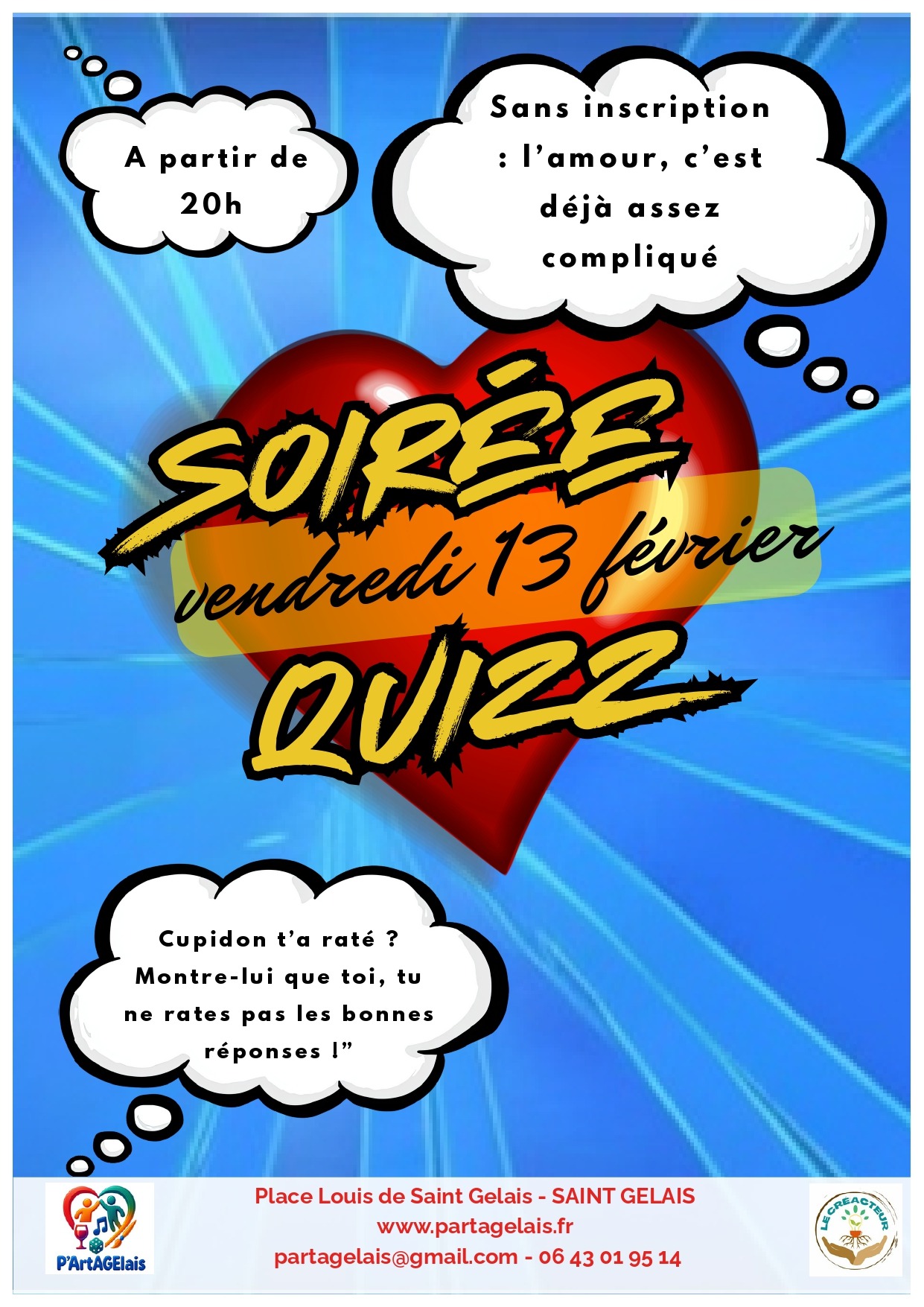 Soirée Quizz vendredi 13 février 2026 à partir de 20h00 sur le thème de l’amour.