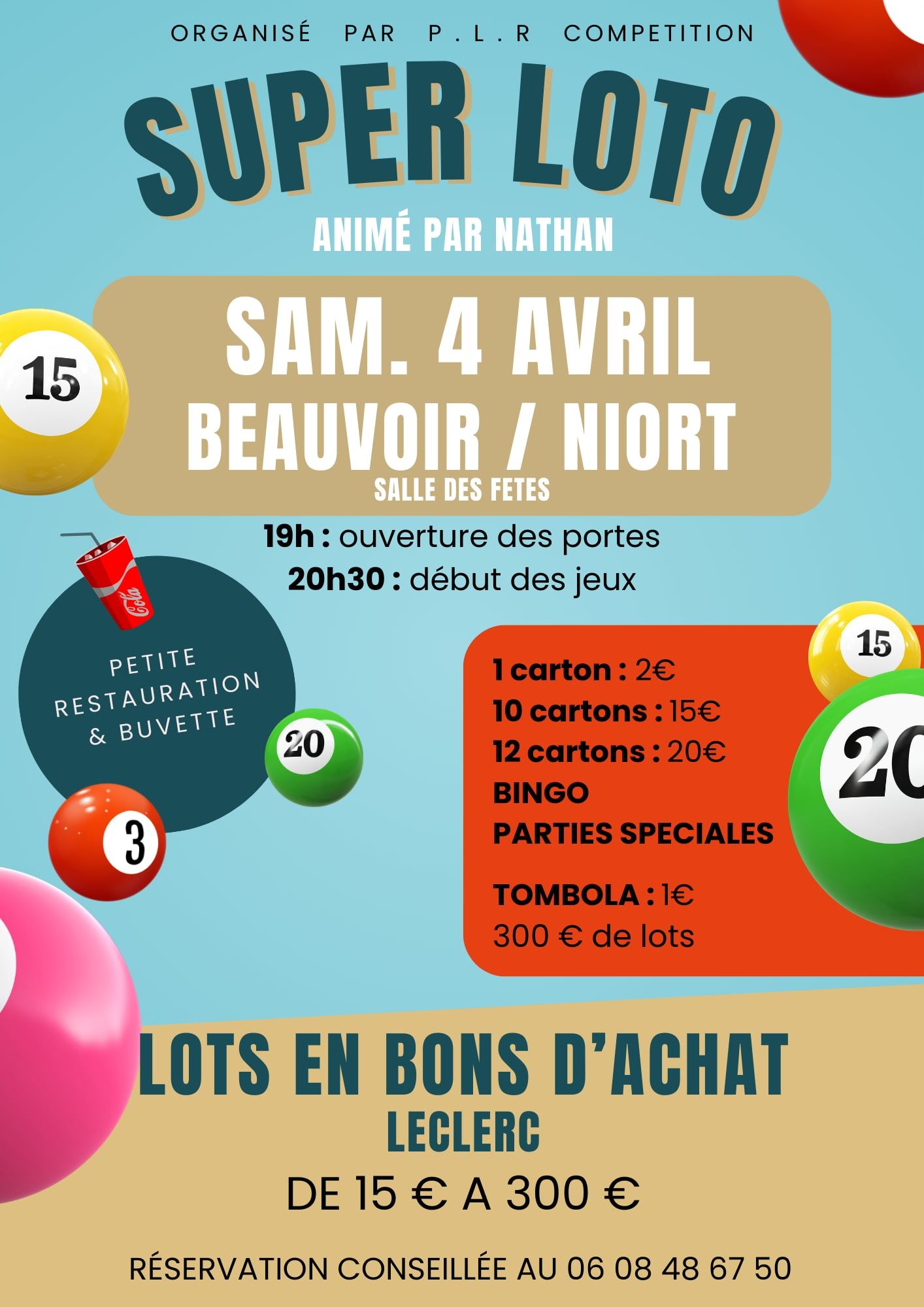 Super Loto samedi 4 avril 2026 à la salle des fêtes de Beauvoir-sur-Niort.