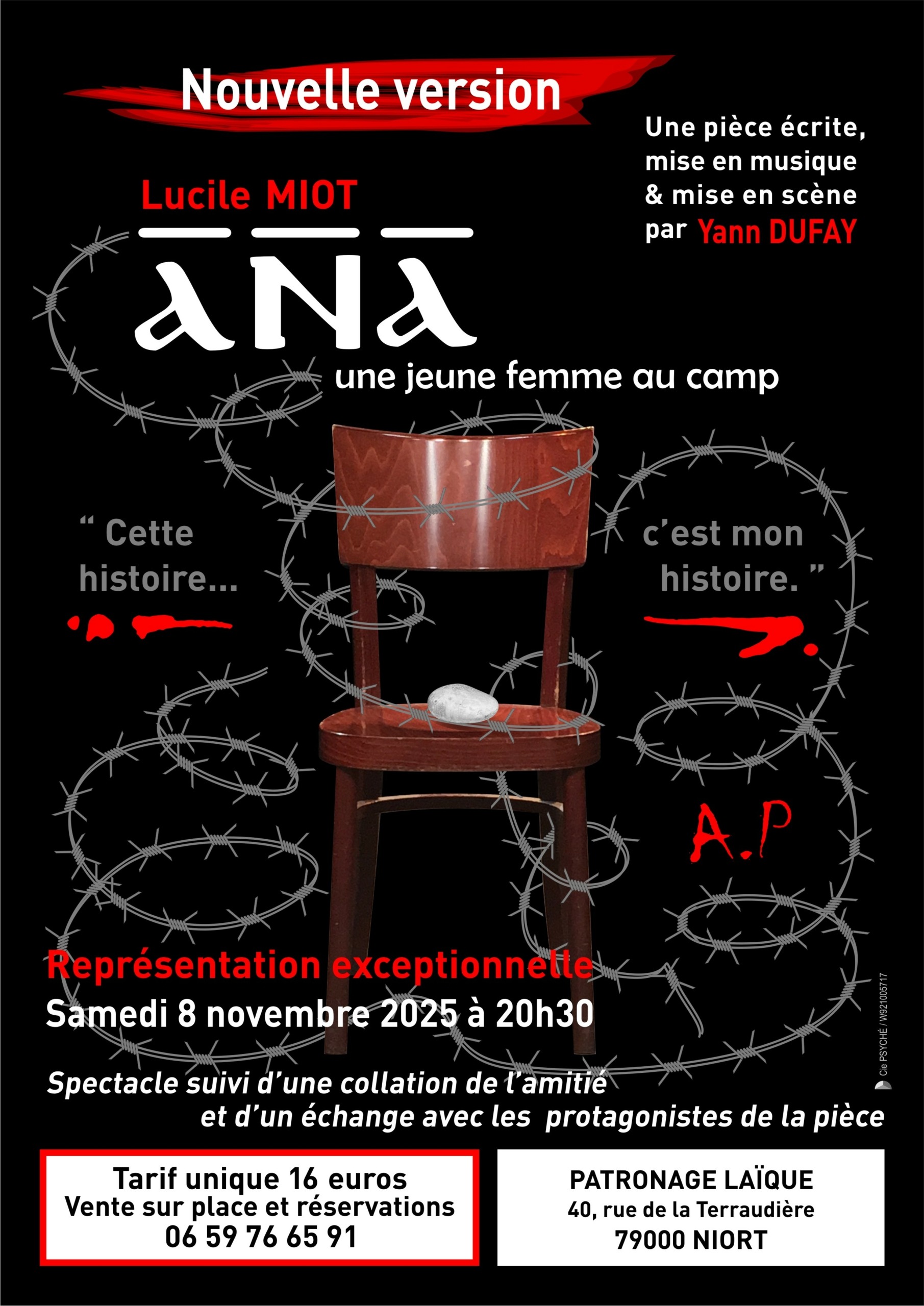 Le 8 novembre 2025, Niort fait un saut dans le passé en accueillant la Compagnie Psyché pour son spectacle Ana une jeune femme au camp.