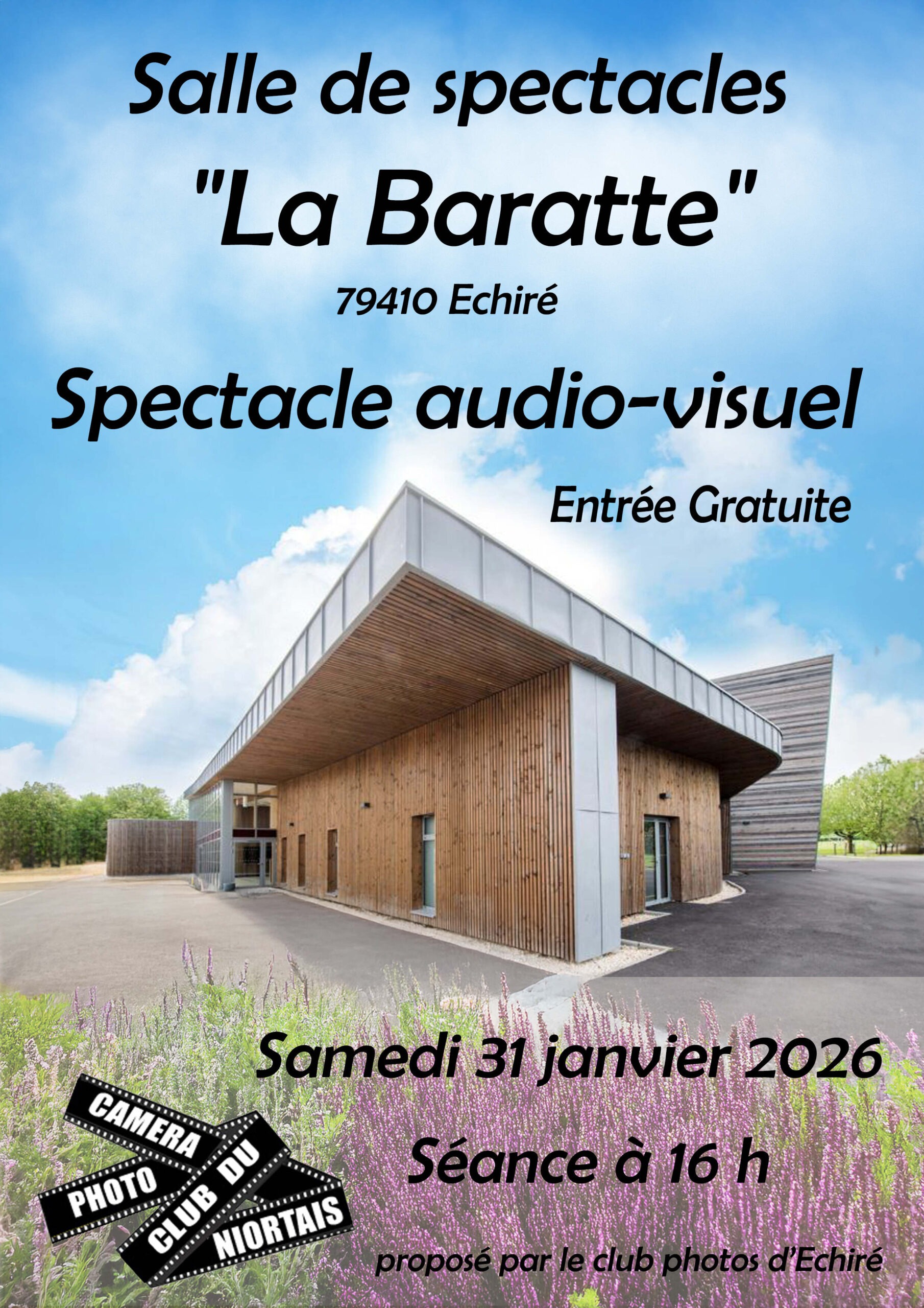 Spectacle audio-visuel présenté par le Caméra Photo Club du Niortais samedi 31 janvier 2026 à 16h00 à La Baratte à Echiré près de Niort.