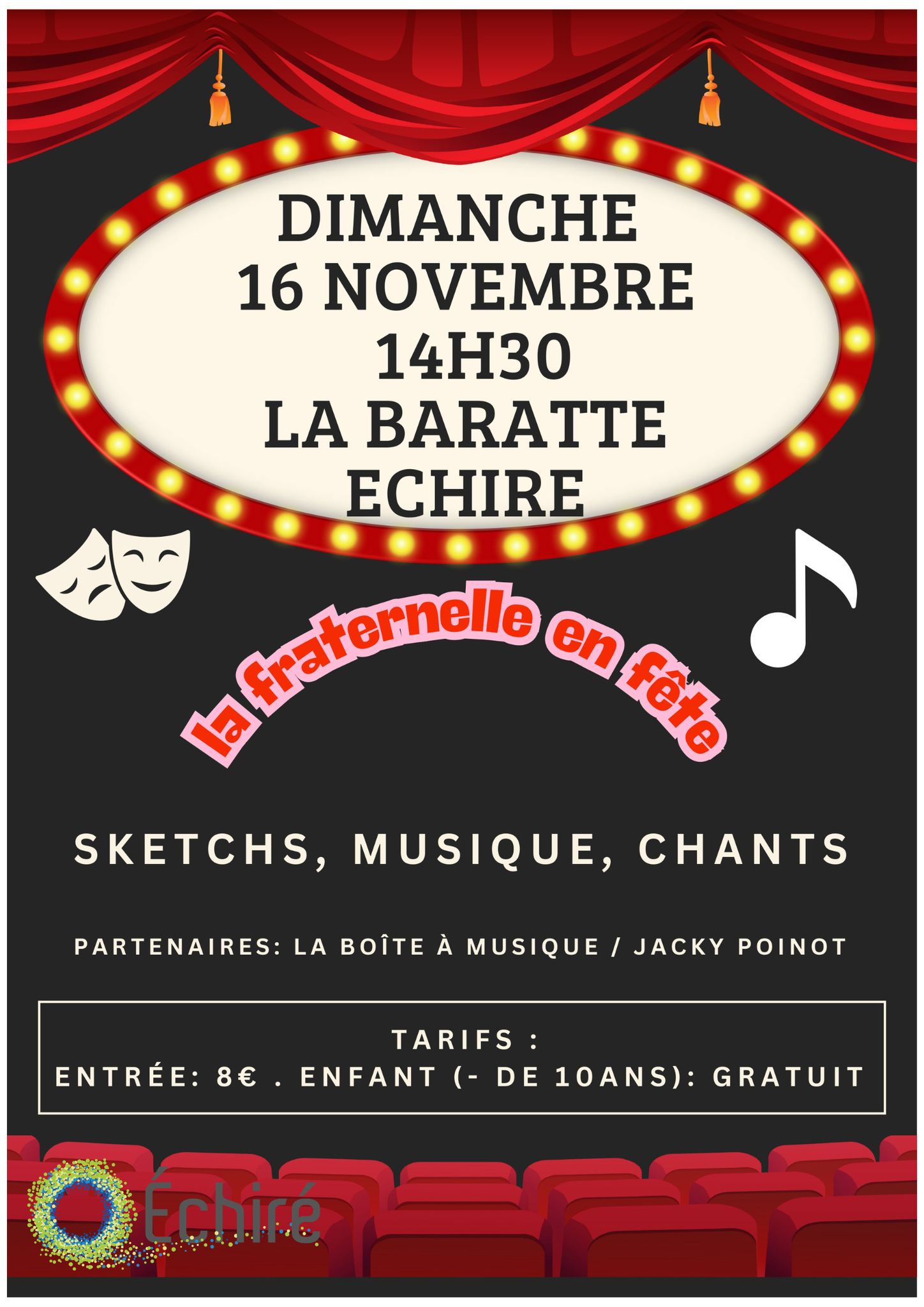 La Fraternelle en fête dimanche 16 novembre 2025 à 14h30 à La Baratte à Echiré près de Niort.