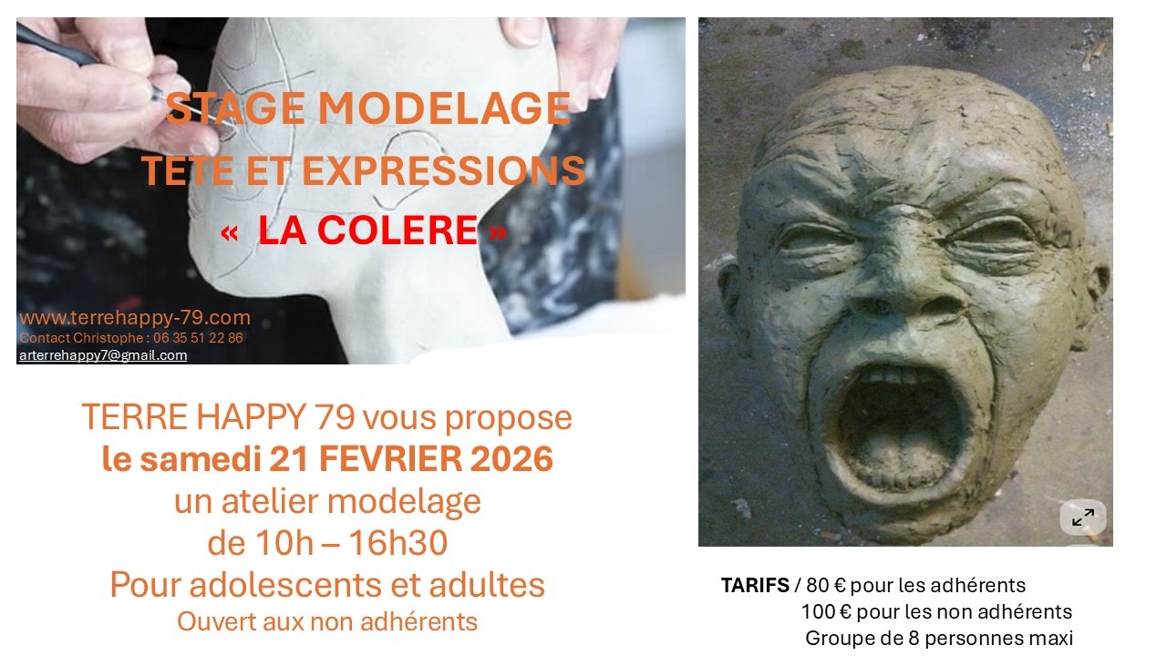 Stage Modelage organisé par Terre Happy 79 samedi 21 février 2026 de 10h00 à 16h30 à Aiffres près de Niort.