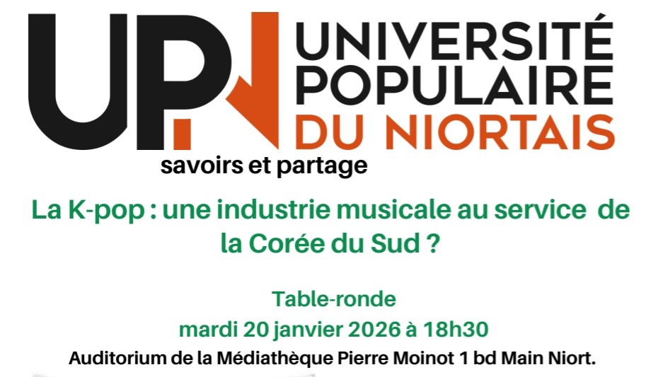 L’UPN organise une soirée mardi 21 janvier 2026 à l’auditorium de la médiathèque de Niort : La K.Pop : une industrie au service de la Corée du Sud ?