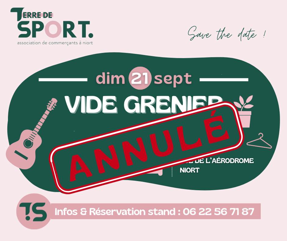 Dimanche 21 septembreRue de l’Aérodrome – NiortDe 9h à 17hBuvette & restauration sur placeProfitez de l’été pour faire du tri dans vos placards.Les inscriptions pour réserver un stand sont OUVERTES !Infos & réservations : 06 22 56 71 87