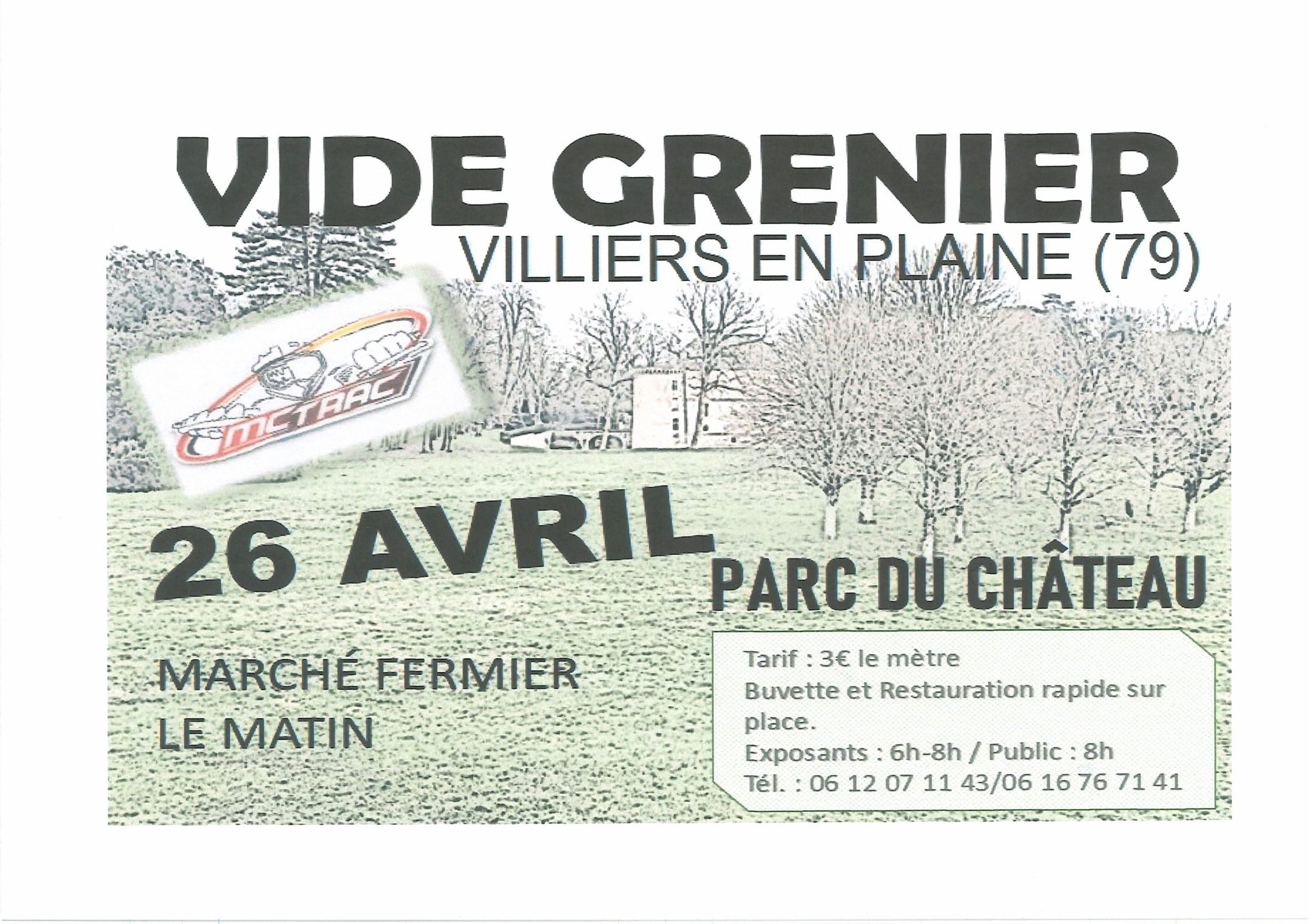 L’association MC TRAC organise son vide grenier dimanche 26 avril 2026 dans le parc du château de Villiers-en-Plaine près de Niort.