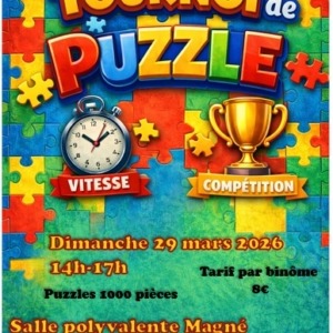 En partenariat avec l’Association Les AvenJoueurs, Magnéjoue vous propose un concours de puzzle de 1000 pièces, en binôme, le dimanche 29 mars 2026 de 14h à 17h à la salle ...