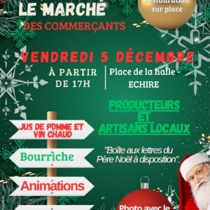 Marché de Noël des commerçants organisé par l’Association des Commerçants, Artisans et Professions Libérales d’Échiré (ACAPLE) vendredi 5 décembre 2025 à partir de 17h00 Place de la Halle à Échiré ...