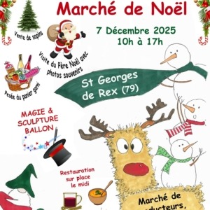 Marché de Noël de Saint-Georges-de-Rex dimanche 7 décembre 2025 de 10h00 à 17h00 au Champ de Foire de Saint-Georges-de-Rex près de Niort. Marché de producteurs et artisans locaux Visite du ...