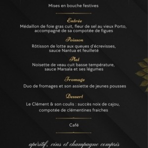 Cabaret avec 3 danseuses et 1 meneuse de revue. Soirée dansante avec Benoit H. Apéritif, vins et champagne compris Menu : – Mises en bouche festives – Médaillon de foie ...
