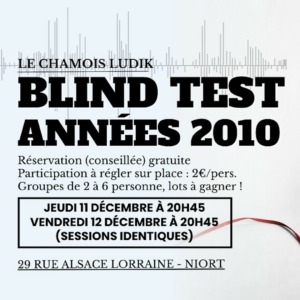 Blind Test « Nés ce mois-ci » Jeudi 04 décembre à 20h45 – Le Chamois Ludik (Niort) Ce mois-ci, on célèbre les artistes nés en décembre ! Des classiques intemporels aux tubes ...