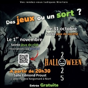 Soirée Halloween organisée par l’AIPE vendredi 31 octobre 2025 à partir de 17h30 à la salle polyvalente de Prahecq près de Niort. Programme sur l’affiche ci-dessus. Entrée gratuite pour les ...