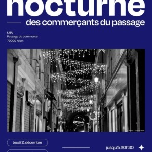 Rendez-vous sous le Passage du Commerce à Niort, les jeudi 11 et vendredi 12 décembre, pour deux soirées shopping exceptionnelles ! Les boutiques restent ouvertes jusqu’à 20h30 pour vous offrir ...