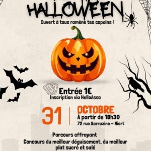 Soirée Halloween Gratuite au CSC Champclairot-Champommier à Niort avec au programme : Concours de déguisements, karaoké, animations terrifiantes. Sur place : petite restauration avec Restaurant Yasmine et buvette.