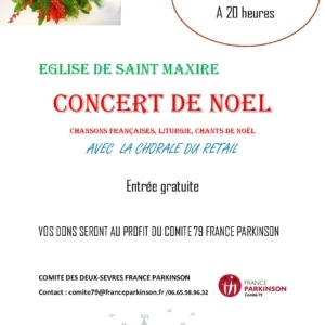 Concert de Noël avec la chorale du Retail samedi 13 décembre 2025 à 20h00 en l’église de Saint Maxire près de Niort. Vos dons seront au profit du Comité 79 ...