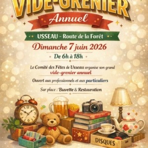 VIDE-GRENIER ANNUEL À USSEAU Le Comité des Fêtes d’Usseau vous donne rendez-vous pour son grand vide-grenier annuel ! Dimanche 7 juin 2026 De 6h à 18h Route de la Forêt ...